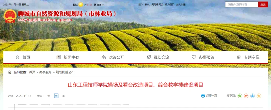 监社御史2023-11-14 14:40:1311月13日,《山东工程技师学院操场及看台改造项目、综合教学楼建设项目批后公布》在聊城市自然资源和规划局网站公布,位于站前街以西、口路以南、湖南路北。